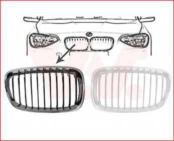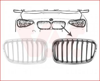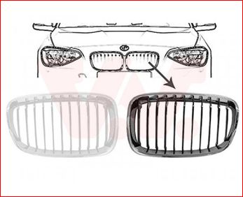 Grille calandre gauche, noire et chromée, modèle basic
