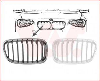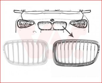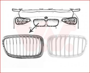 Grille de calandre, gauche, noire et chromée, modèle sport