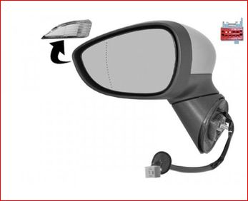 Rétroviseur gauche, à peindre, électrique, chauffant, avec feu clignotant, sans rabattement électrique