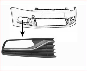Grille de pare-chocs avant, droite, noire, avec moulure chromée, avec emplacement antibrouillard, modèle Comfortline