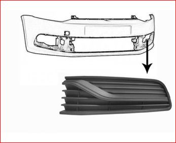 Grille de pare-chocs avant, gauche, noire, avec moulure chromée, avec emplacement antibrouillard, modèle Comfortline